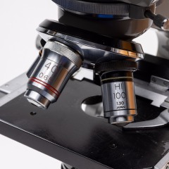 Vintage Olympus Tokyo microscope with wooden case, key, and additional magnifier scopes. Beautiful piece of equipment.